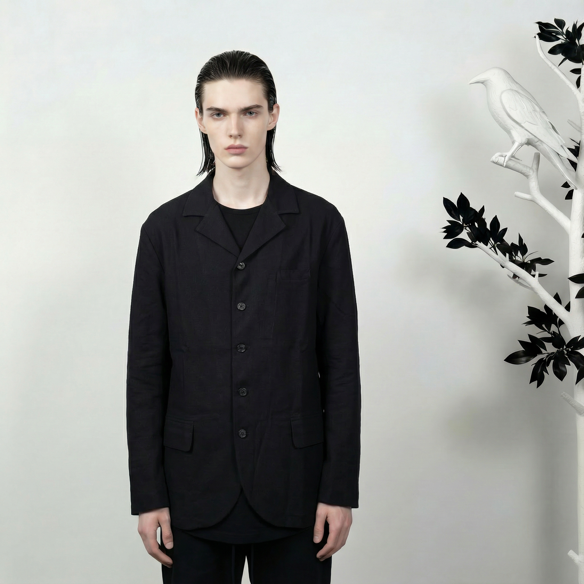 The BV HARU redefines tailored structure through elastic innovation. This blazer incorporates stretch fabrication that accommodates dynamic movement while preserving sharp silhouette definition—a departure from conventional rigid tailoring. The distinctive button design serves as a focal point, elevating the piece beyond standard suiting conventions and introducing deliberate visual interest. The engineered stretch allows extended wear comfort without sacrificing the refined aesthetic essential to contemporary blazer construction. Crafted for those who demand professional polish alongside practical wearability in their tailored pieces.